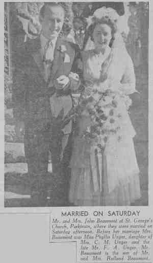 Phyllis married John Toller Beaumont on 5 Nov 1949 in Johannesburg, Transvaal, South Africa. (John Toller Beaumont was born on 25 Jun 1917 in Johannesburg, Transvaal, South Africa, died on 9 Oct 1973 in Johannesburg, Transvaal, South Africa and was buried in Johannesburg, Transvaal, South Africa.)  Sources of information or n events in their marriage were: